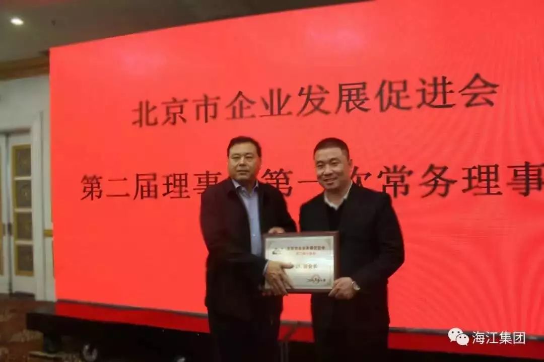 上圖為海江集團(tuán)董事長劉海江當(dāng)選北京市企業(yè)發(fā)展促進(jìn)會副會長