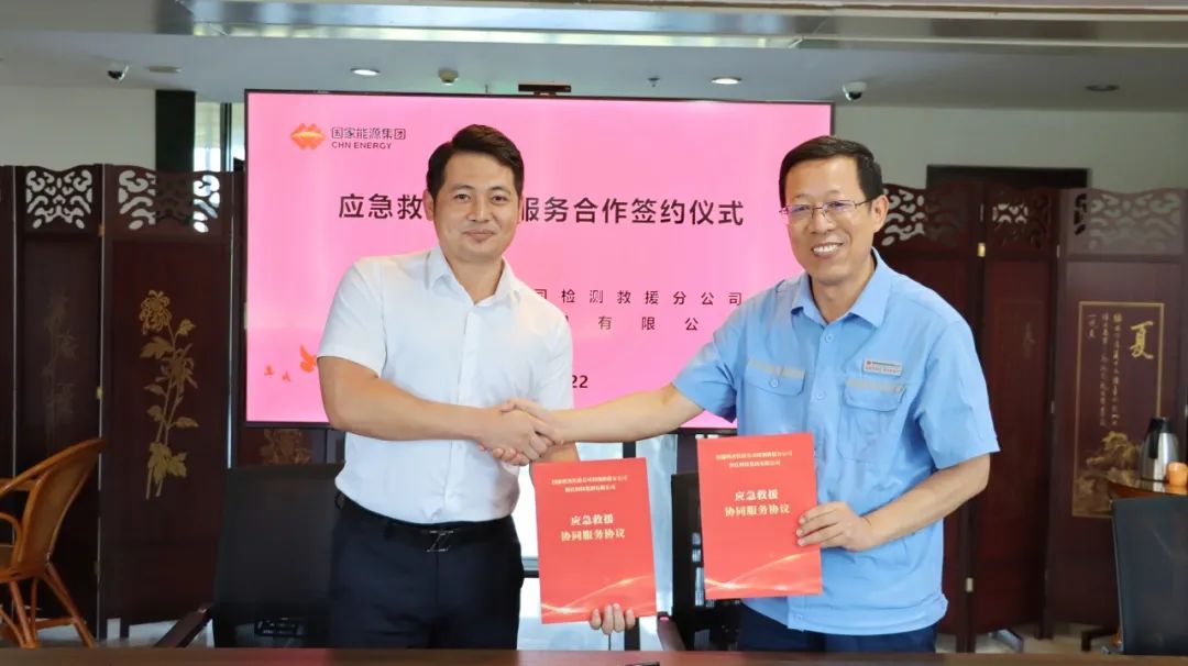 The signing ceremony of emergency rescue cooperative service cooperation between the Testing and Rescue Branch of Guoneng Shuohuang Railway Development Co., Ltd. and Haijiang Technology Group Co., Ltd. was held.
