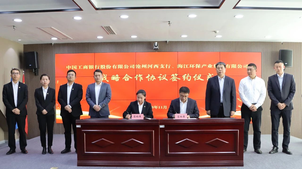 ? ? ? On November 17, 2023, Wang Bali, president of ICBC Cangzhou Hexi Sub-branch, and Xu Yanxia, financial officer of Hai Jiang Group, signed a strategic cooperation agreement. Chu Long, general manager of Hai Jiang Group, and Du Tiemin, vice president of ICBC Cangzhou Branch, together with relevant personnel, participated in the signing ceremony, and the two sides held a seminar on the relevant cooperation matters.
