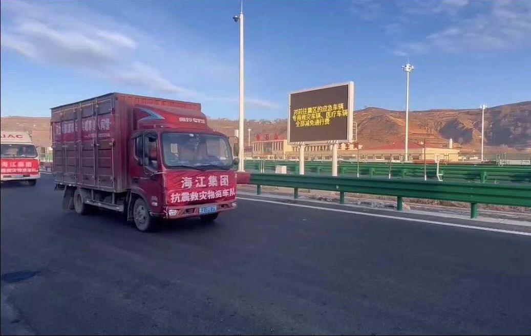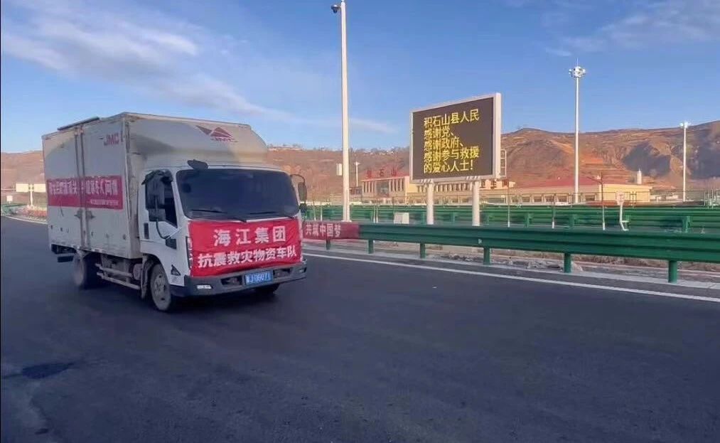 ? ? ? ?Earthquake relief is urgent. On December 25, Haijiang Group's material convoy raced nearly 2,000 kilometers and has now arrived in Jishishan County, Linxia, Gansu Province, to hand over materials to local volunteers.