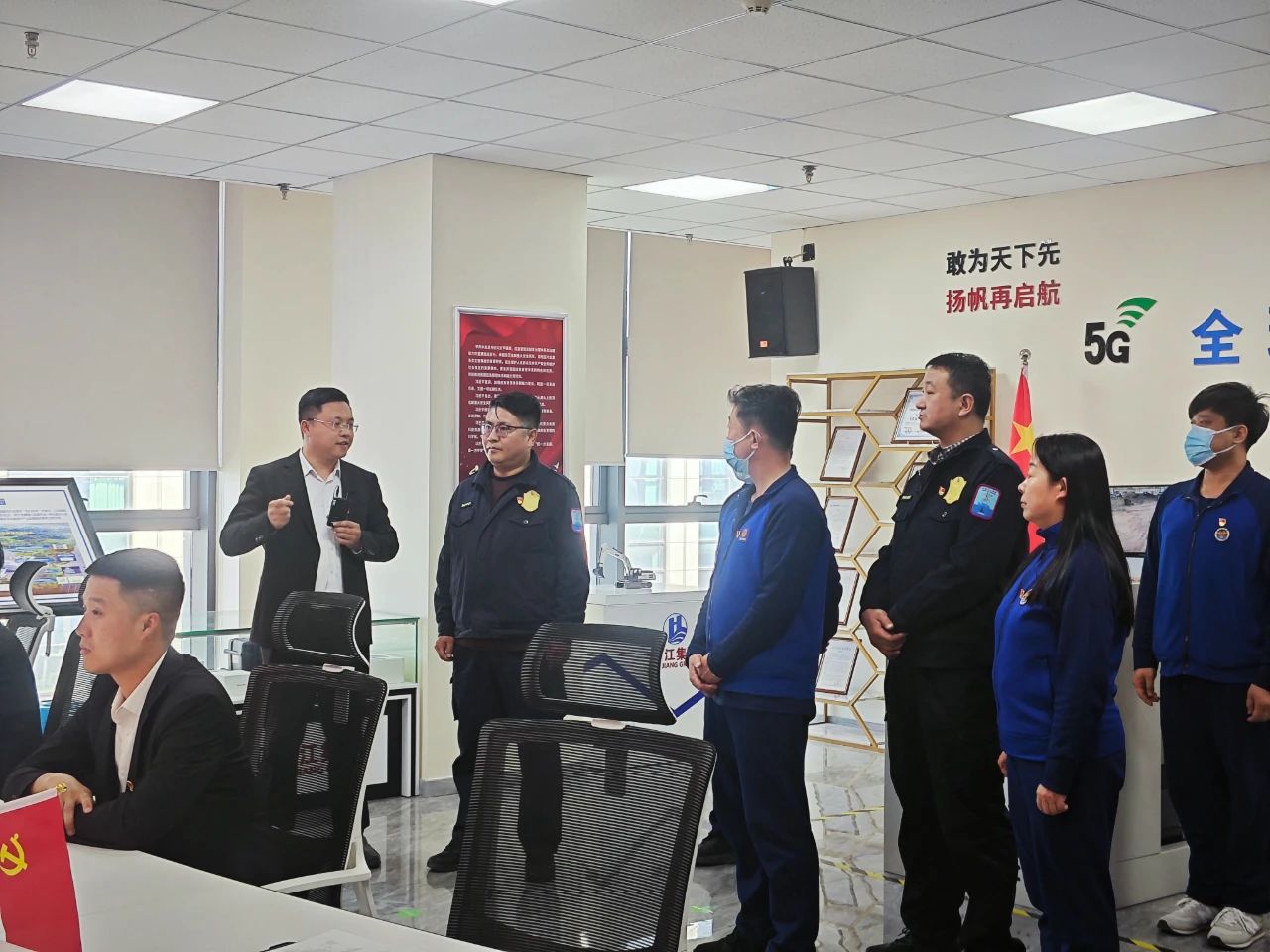 On the afternoon of March 22, the leaders of Cangzhou Refining and chemical Emergency Command Center arrived at Haijiang Group and then visited the 5G intelligent command center of Haijiang Group.