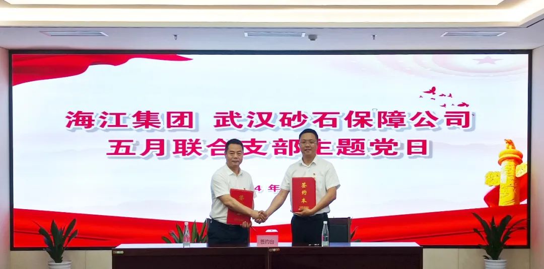 ? ? ? The signing ceremony of the Party construction and co-construction was successfully held, which deepened the communication between Haijiang Group and Wuhan Sand and Gravel Guarantee Company of Yangtze River Industry Group, and also laid a solid foundation for the in-depth cooperation of the two sides in a broader dimension. Adhere to the red leadership of Party building, pursue the green development of new quality productivity and digital technology momentum, the two sides will give full play to their respective advantages, forward-looking layout of future industries, jointly committed to promoting the sustainable and healthy development of enterprises, and contribute to the high-quality development of Chinese-style modernization.