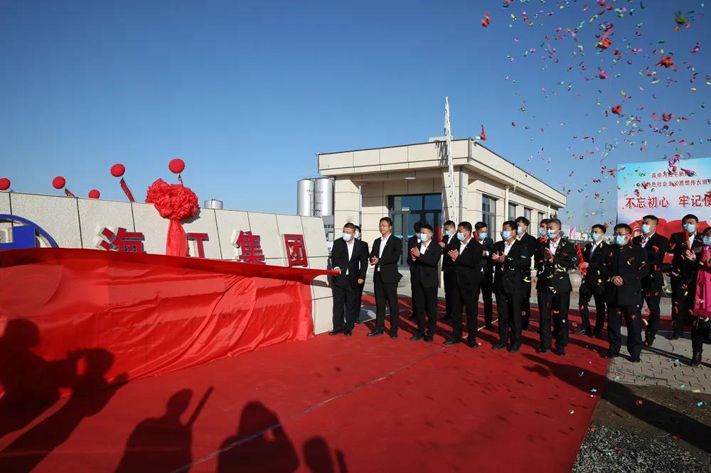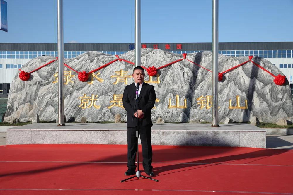 典禮上,海江集團各位領導為循環經濟產業園廠區揭牌,大家共同見證這美好時刻。伴隨著禮炮的鳴響,廠牌上的紅綢緩緩落下,“海江集團”幾個大字映入眾人眼簾。