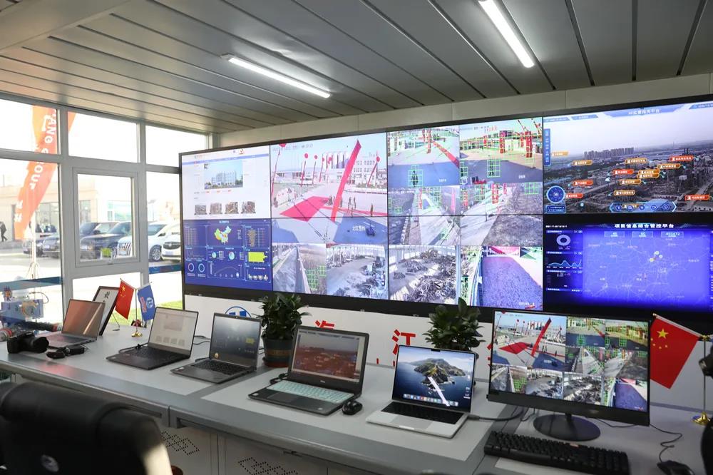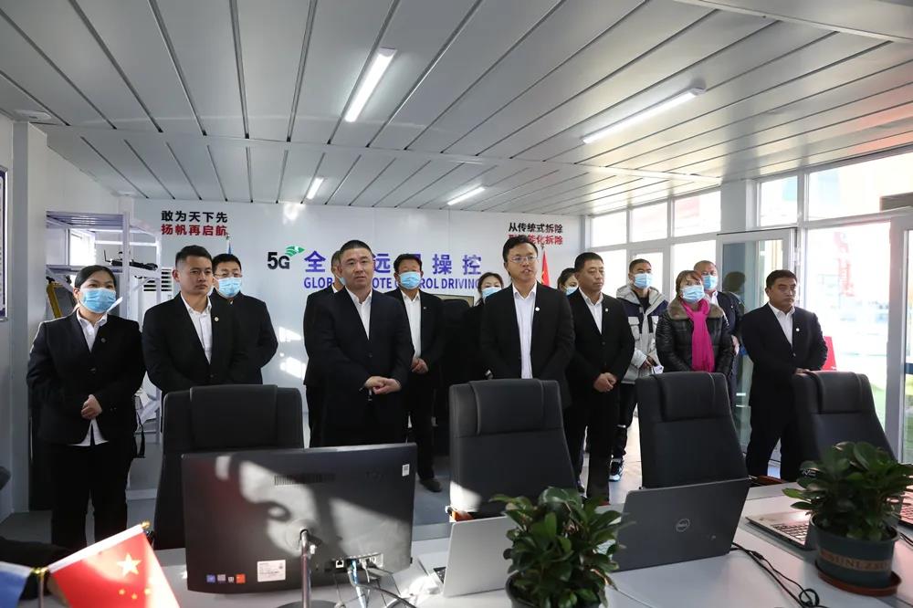 儀式結束后,與會領導饒有興致地參觀了項目調度指揮中心,深入了解新園區信息化建設,重點詢問了5G全球遠程操控和AR實景智慧平臺等優勢技術的發展落實情況。