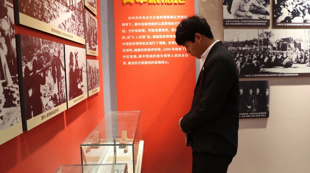 ? ? ? ? 活動當(dāng)天,海江集團(tuán)黨支部率領(lǐng)黨員代表首先參觀了冀中革命烈士紀(jì)念館,聆聽于主任講解革命先烈事跡。從土地革命時期、八年抗戰(zhàn)到三年解放戰(zhàn)爭,紀(jì)念館系統(tǒng)展現(xiàn)了冀中軍民為了民族解放流血犧牲、前赴后繼、英勇戰(zhàn)斗在京南大地的光輝歷史。