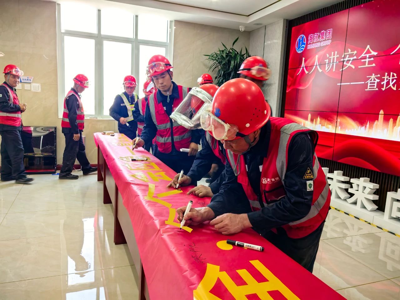啟動會現場,集團安環監管部負責人首先宣讀《安全生產月活動計劃》,系統部署為期一個月、覆蓋全集團的系列活動。在莊嚴氛圍中,與會人員代表在主題橫幅上鄭重簽名,許下踐行安全責任的堅定承諾。