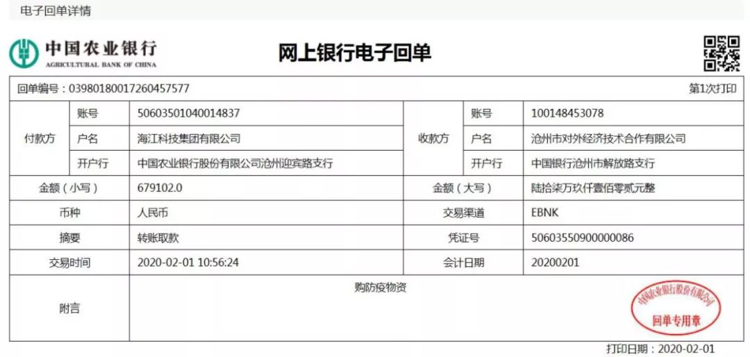 近期,湖北省武漢市等多個地區發生新型冠狀病毒肺炎疫情,牽動著全國人民和海江人的心。在 1 月 25日(農歷大年初一)召開的中央政治局常委會上,習近平總書記再次強調:“生命重于泰山,疫情就是命令,防控就是責任。”在這場突如其來的疫情面前,人人守土有責,海江集團不忘初心使命與社會責任!“心系家鄉,全力支援,抗擊疫情”在國內防疫醫療物資緊缺的情況下, 委托“滄州外經”在國外加急采購一批進口醫療物資,無償捐助滄州市政府,為我市抗擊新型肺炎工作提供堅實屏障。