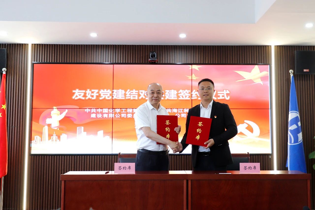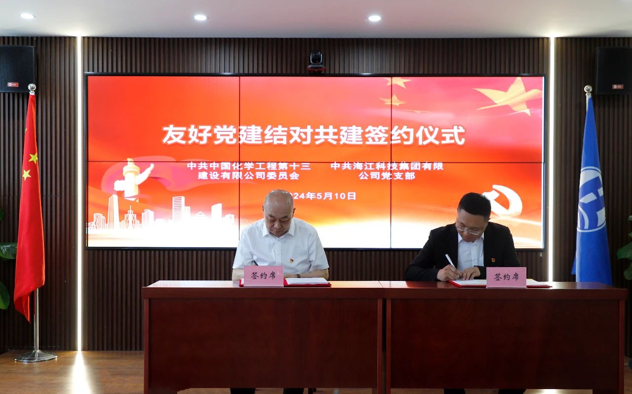 ? ? ? 為全面貫徹黨的二十大精神,堅持以習近平新時代中國特色社會主義思想為指導,認真落實《中國共產黨支部工作條例(試行)》要求,堅持和加強黨的全面領導,深化探索黨建方面有新的突破和提高,實現“組織建設互促、黨員干部互動、黨建成果互用”的目的。2024年5月10日,海江集團黨支部與中國化學工程第十三建設有限公司黨委結對共建協議簽約儀式隆重舉行。